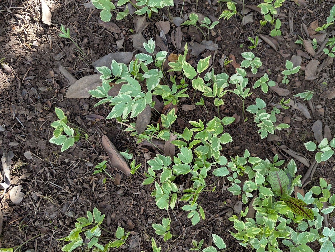 Bishop’s Weed. Aegoyodium podagraria ‘Variegatum’. I happen to like this one, too. I encourage it as a ground cover. Insects like it as well, and it isn’t all that difficult to keep in one spot. It is not a native and is considered by some gardeners to be invasive. (Also known as “Bishop’s Goatweed”.)