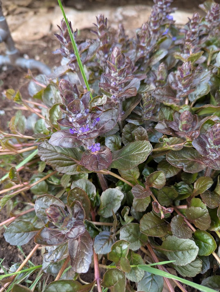 Bugleweed. Ajuga reptans. I actually paid money for this when I first started building a flower garden in our yard. I have ripped it out numerous times. It comes back like Arnold Schwarzenegger. You could almost nickname it “The Terminator” because of how competitive it is. Nothing grows under this ground cover. It is aggressive. It fools you into thinking it is gone, eradicated, and then… Voila! There it is, again. Pretty purple flowers and foliage. I have relegated a patch to a border bed and I hope to keep it relegated there since I cannot kill it. Don’t pay money for this cultivar unless it is the only plant you want in your flower bed. Like Vinca Major or Minor, you get one single species and it covers the ground with great enthusiasm.