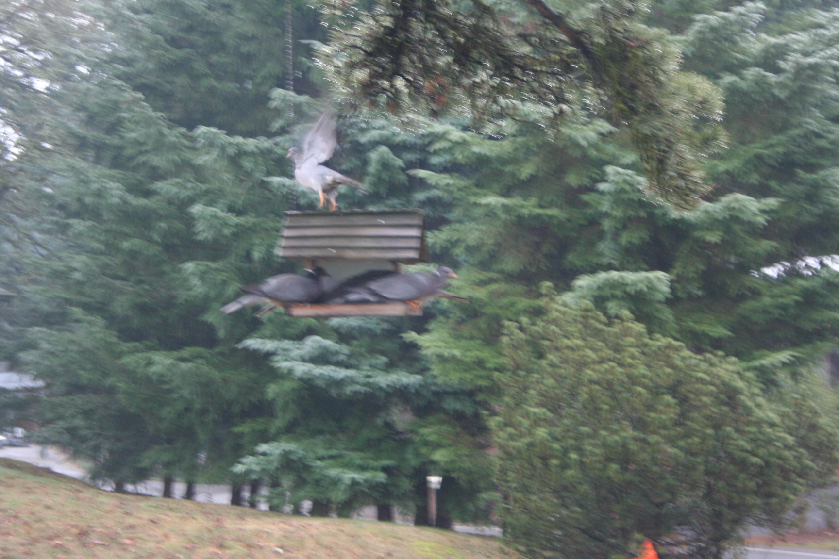 Only five band-tailed pigeons came to the feeder and as soon as they saw me at the window with the camera, they were off. They’re so shy!