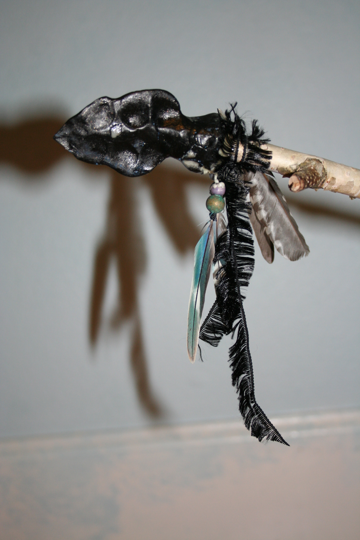 She’s a shaman as well. I found some very cool raven-shaped beads at the craft store, the rest are beads I had on hand.