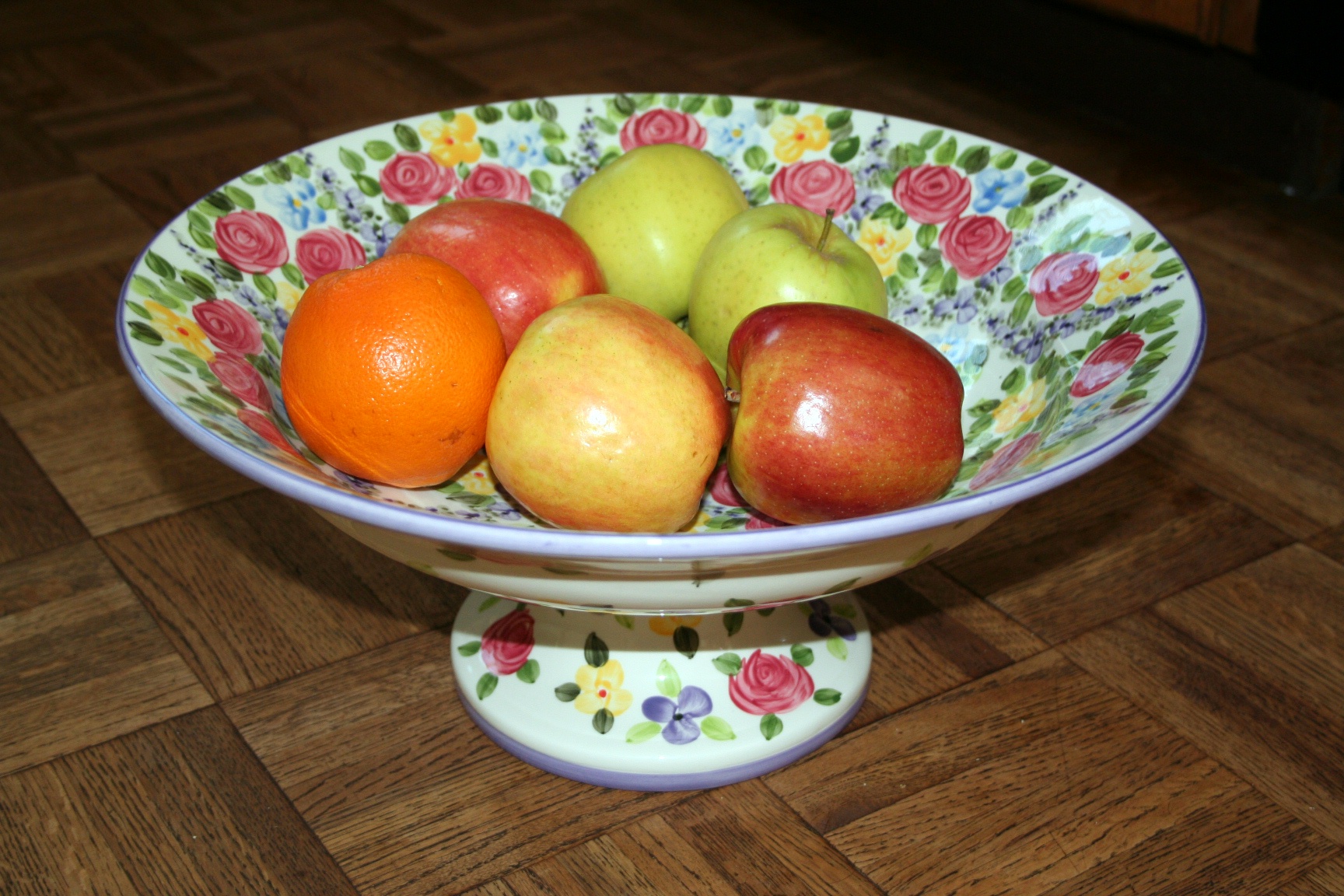 Well, sans the fruit. He just had the pedestal bowls in his arms and looked quite protective of it. I was just floored: it is identical to the one I was drooling over at work last week! $3. How did Don know I would love that?? It’s so perfect.