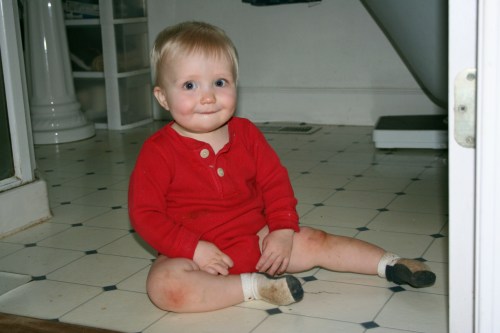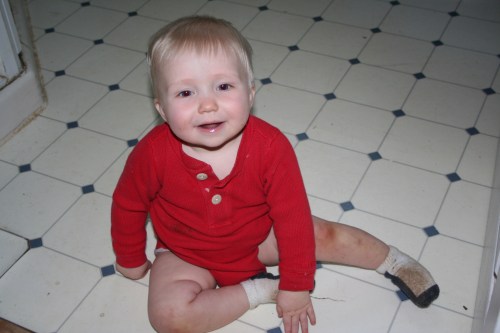 But I think I like the dirty knees and socks best. His grandma needs to mop the floors.