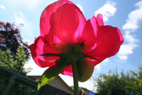 So for my 500th post, I offer up a red peony (sorry it is not a red poppy) and a long silent moment to all the men and women who served during World War II. (Note: the red poppy dates back to WWI and the poem by John McCrae, “In Flanders Fields”. But it remains a symbol used by veterans of Canada, the US, Great Britain and France and especially is used by disabled veterans. John McCrae was a Canadian.)
