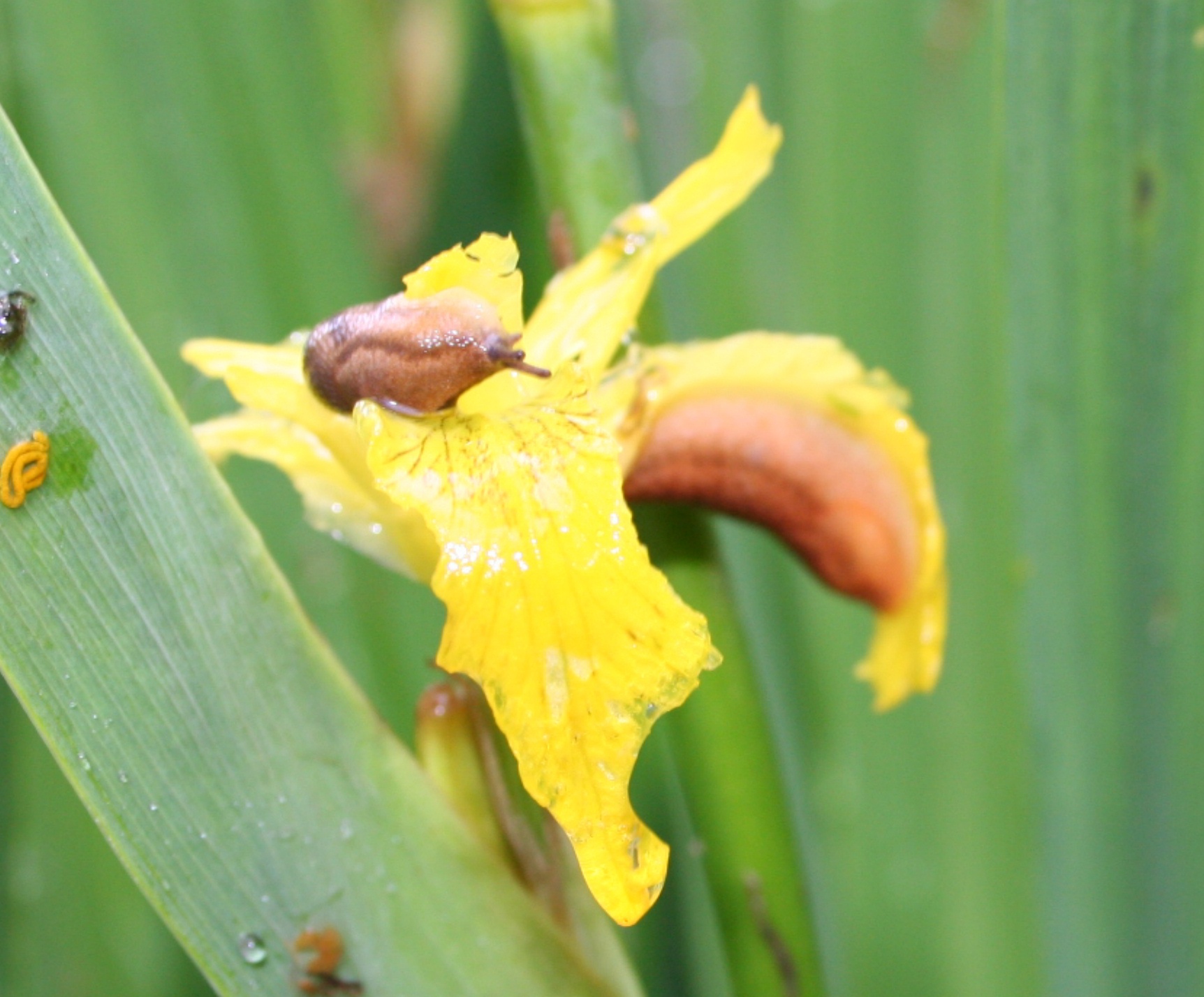 Slugs ravish my irises. I’ve tried beer traps (messy, messy, messy and the beer quickly becomes clogged with dead slugs, diluted with rainwater, and breeds mosquito larva): they only work where you have a minor problem with slugs, not a Pacific Northwest yard invasion.