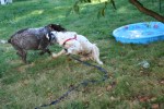 They’re good doggie friends. While some of the photos look like they are fighting, there were only play growls and play feints being made. Happy dogs.