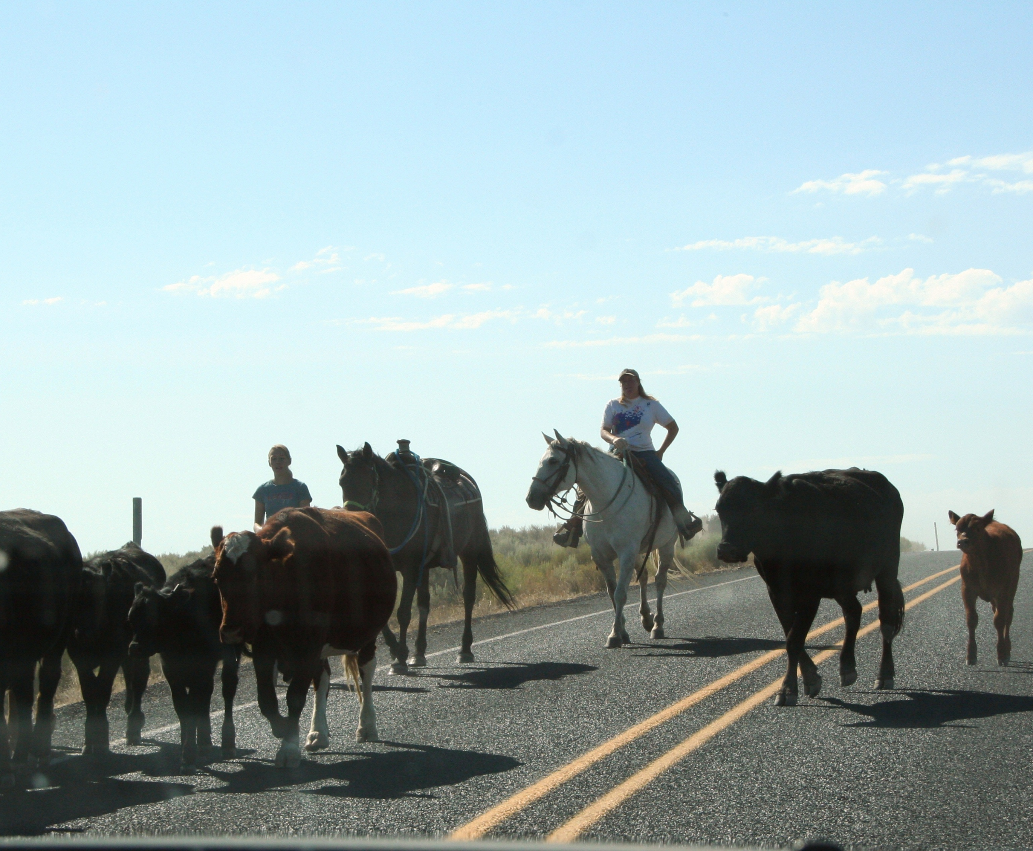 Which brings me to the cattle drive. There’s nothing quite like being stuck in the middle of a cattle drive. Don and I may be from Portland these days, but we grew up in rural counties of Oregon and Nevada. We grew up with the knowledge of how to drive through one: essentially, you slow down to a mere crawl and wait for the cows to part. Try to move too quickly and Bossy might kick out a head lamp. And there’s the cow poop to deal with.
