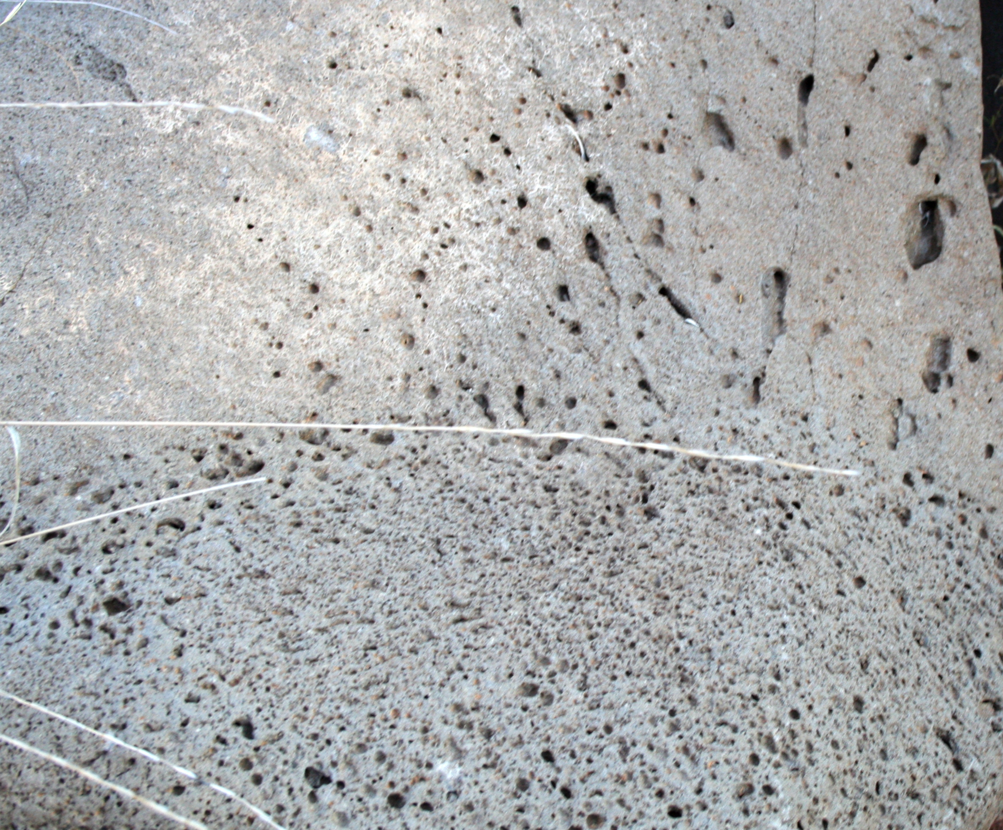 Something altogether different in a pale grey stone chock full of tiny holes.