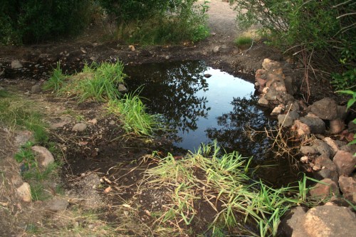 Every morning, we’d get up and Pike Creek would be flowing at full capacity. By five or six o’clock in the evening, evaporation and the needs of the many plants that rely on the stream for sustenance will have taken their toll. I actually did a before/after of Pike Creek.