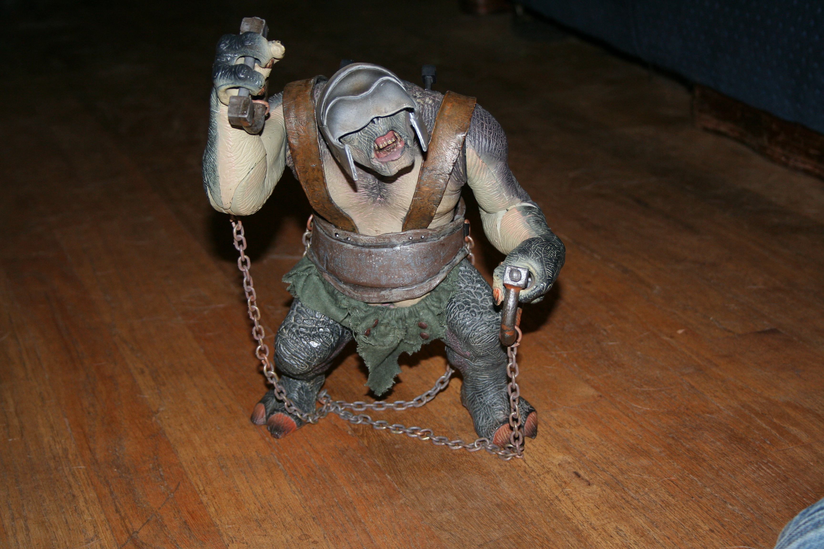 The orc was the coolest Goodwill find EVER. I can’t believe someone got rid of it. A couple of AA batteries and the thing has this awesome roar. It’s poseable, too. (Spell check doesn’t like that word, but I looked it up: you can spell it poseable or posable. Spell check doesn’t like either one!)