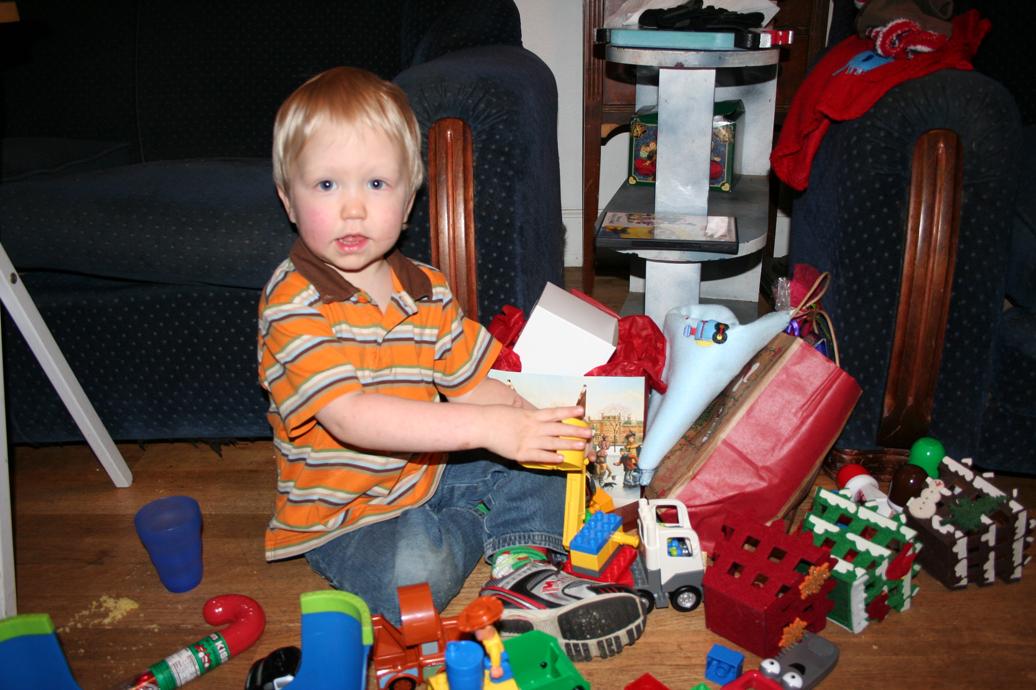 Booger-face was hyped up all day Christmas, which was good. He didn’t care about toys, he just cared about climbing all over everyone and running from one end of the house to the next.