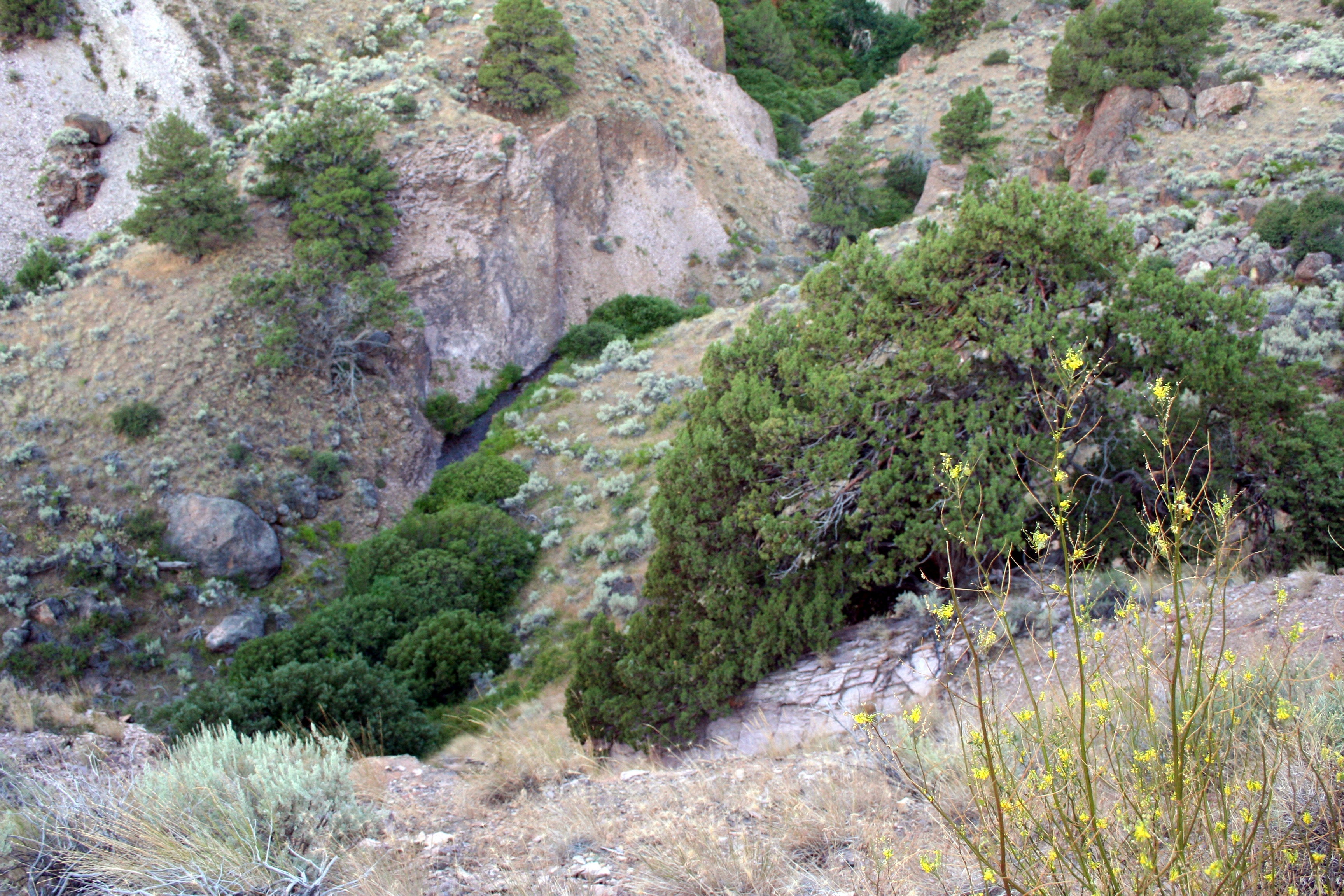 I have been in that canyon along the water. Once. Don, Arwen, Levi & I hiked there when our English Pointer was young and we climbed down through the sagebrush to the water’s edge where Sadie barked at all the butterflies. It was a magical moment for Sadie, I’m sure. The rest of us were merely irritated by all her barking.