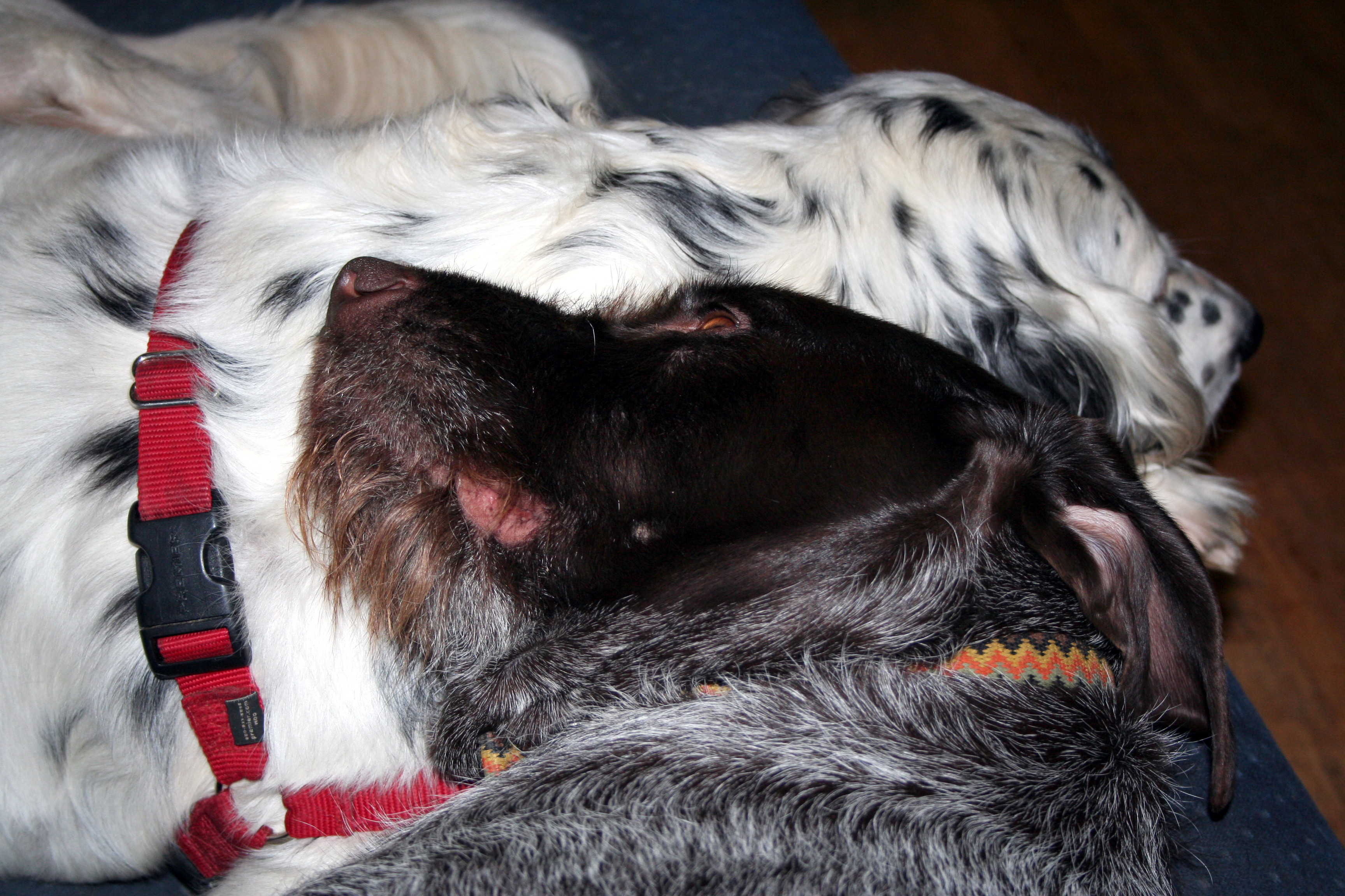 But Murphy is not compatible with a cat and I was left pet-less, a totally unacceptable state. So I decided I needed to adopt a dog of my own. I did not set out to get another bird-dog, but when everything finally came together for me to adopt, I adopted an English Setter that was a year younger than Murphy. Harvey had his own dominant issues, but he was not dominant-aggressive. He’s dominant-passive. That’s good, on the people end of things.
