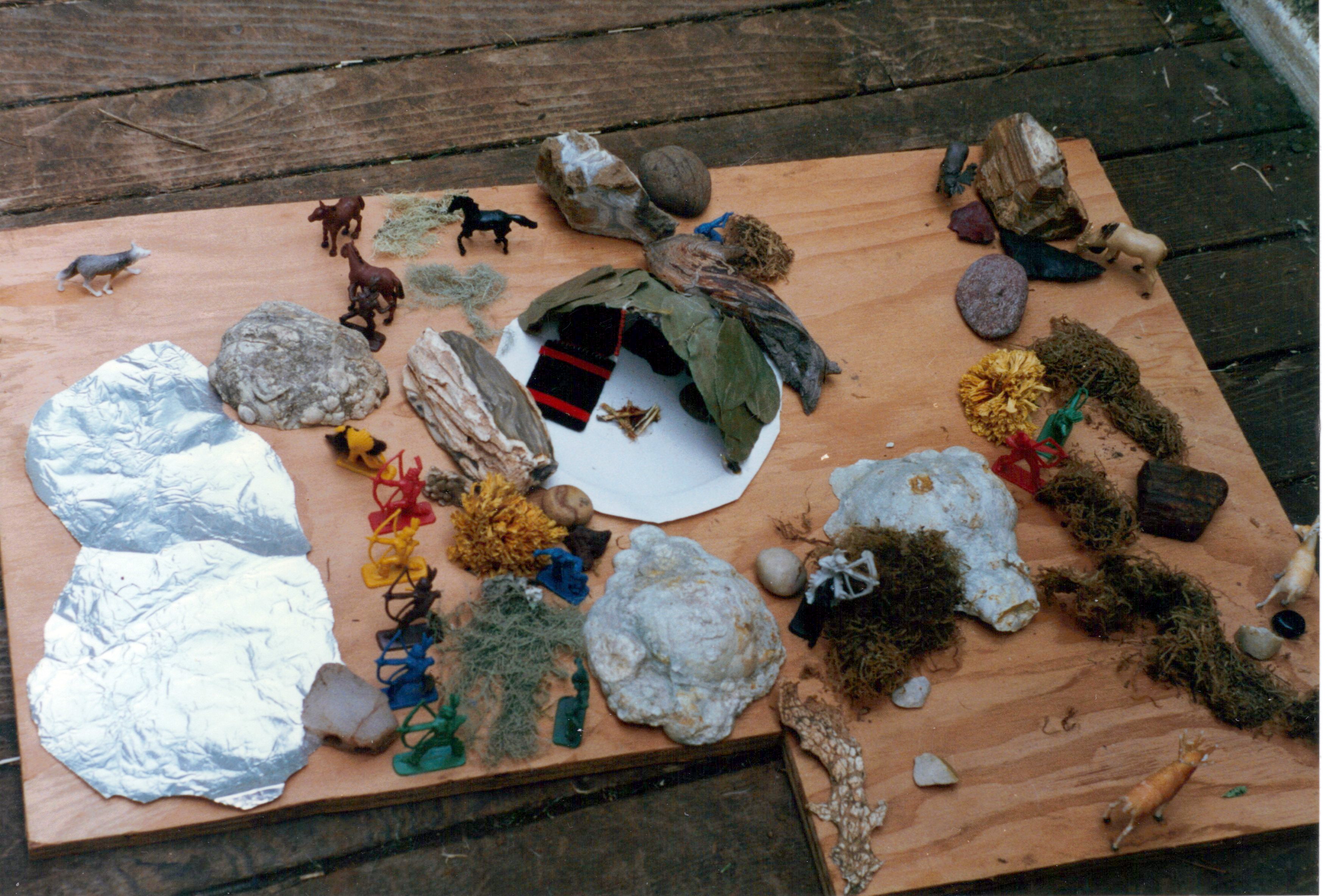A homeschool diorama of some Native American something. Love the use of Thundereggs and other rocks, moss, lichens and aluminum foil. I’m pretty certain it was all Levi.
