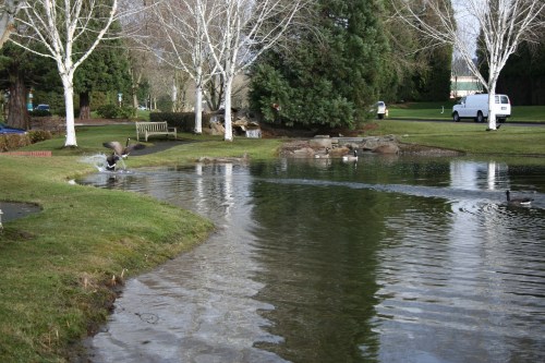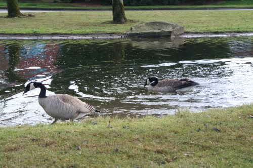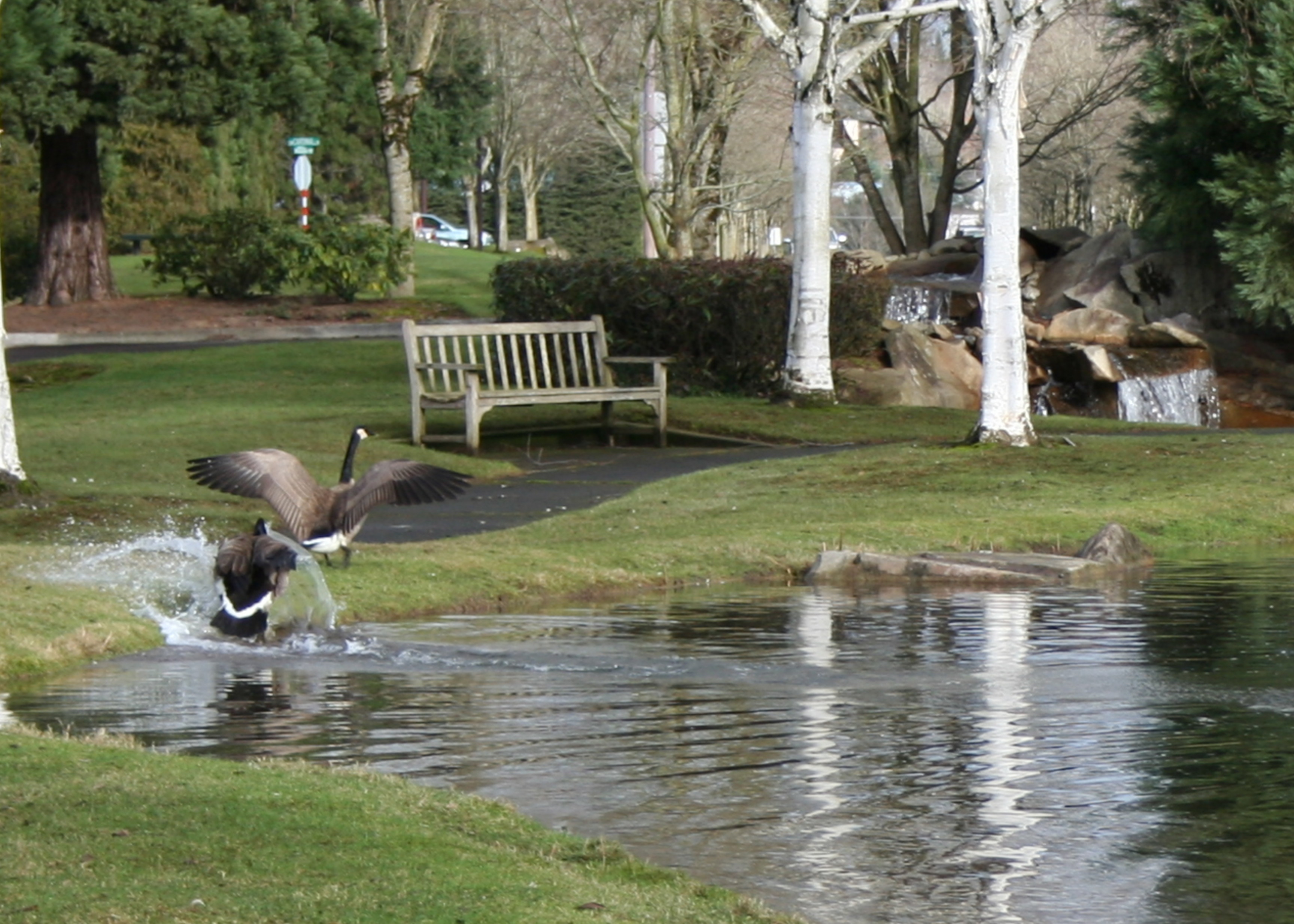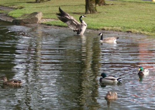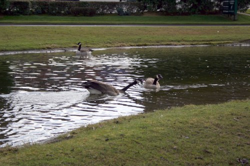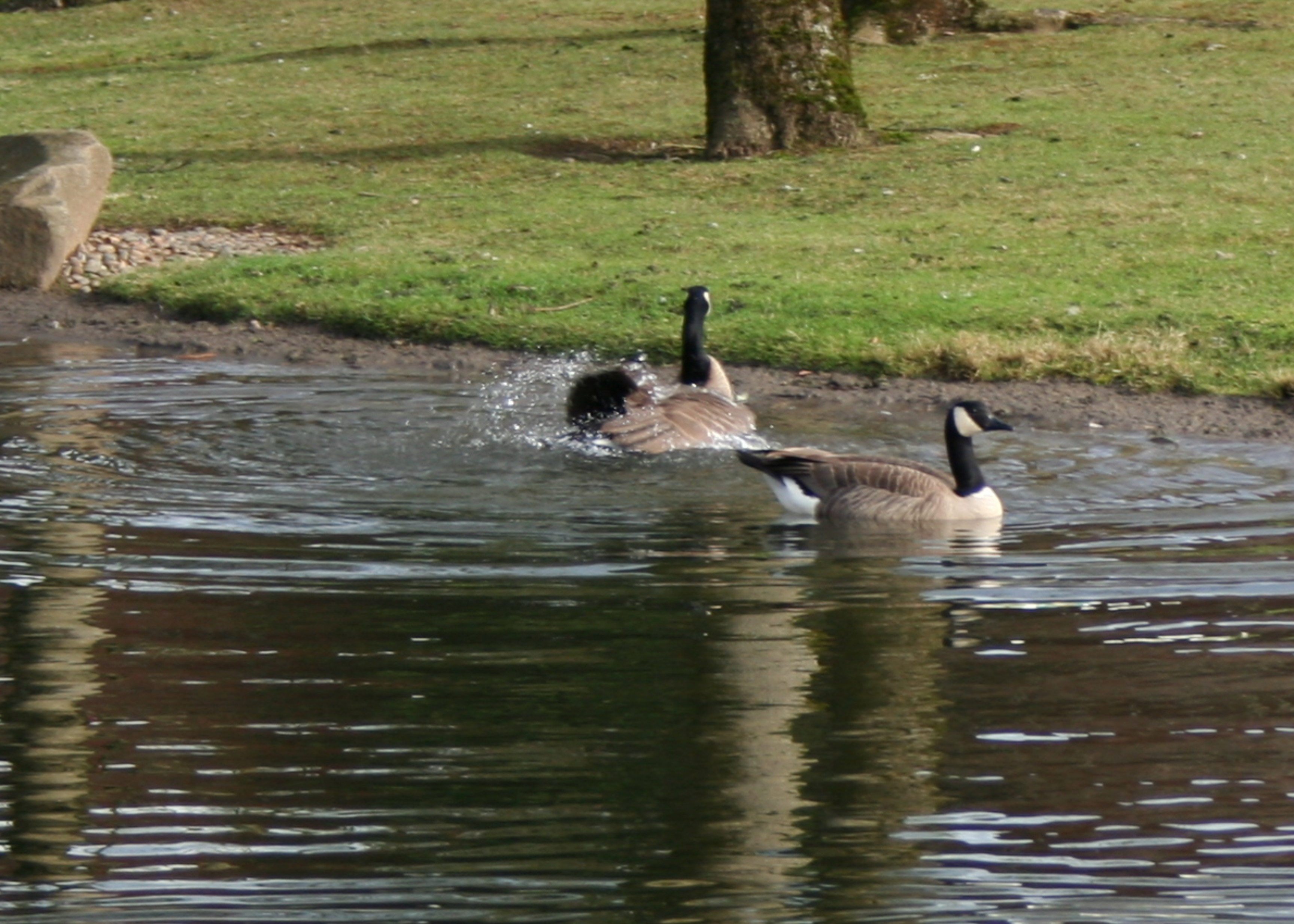 Just geese hanging out at the local pond. Doing a little “posturing” for dominance.