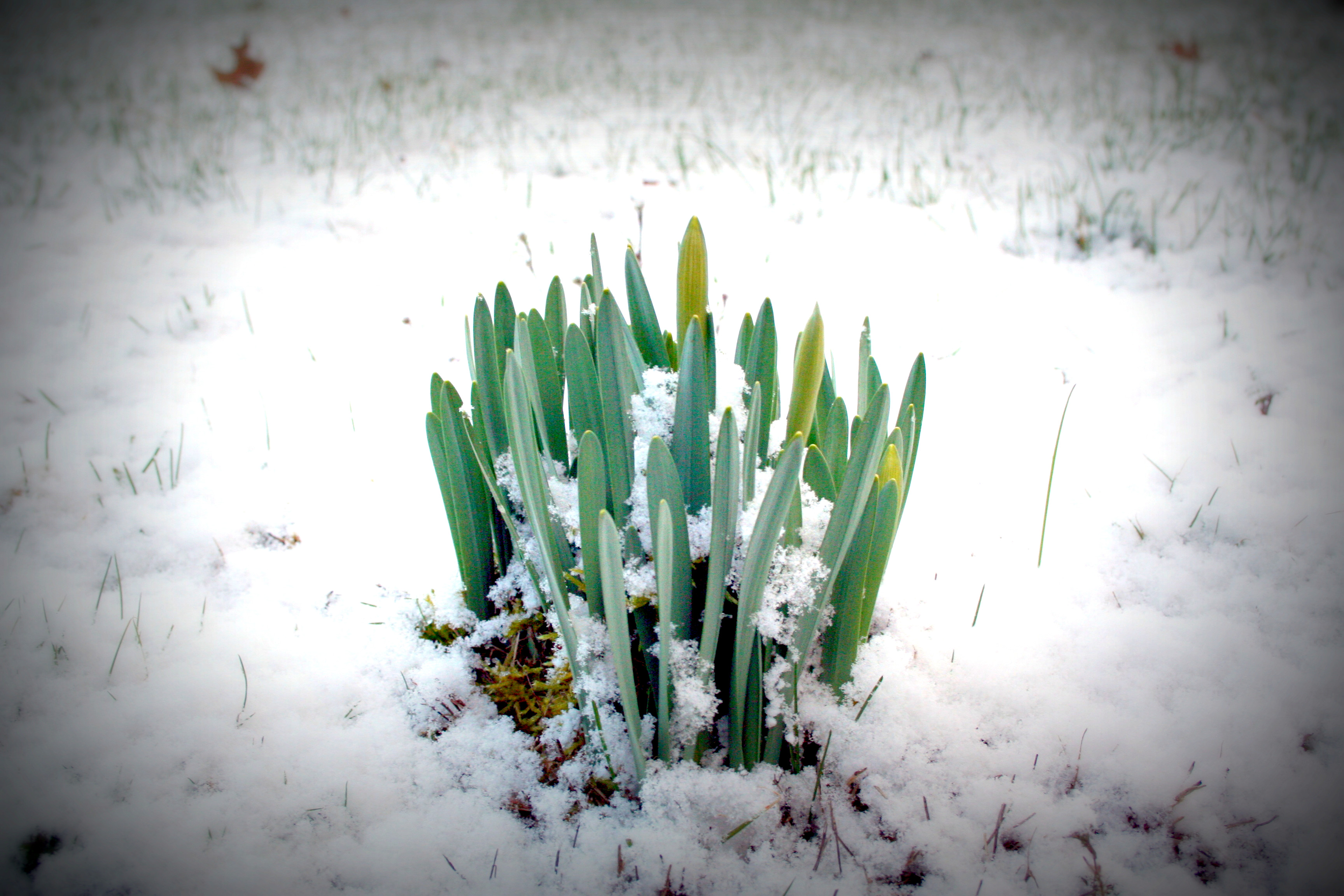 This was the only one I had time to work on: the daffodils in my yard yard, pushing up through the new-fallen snow. I had to boost the color for the contrast of yellow against the white of snow.