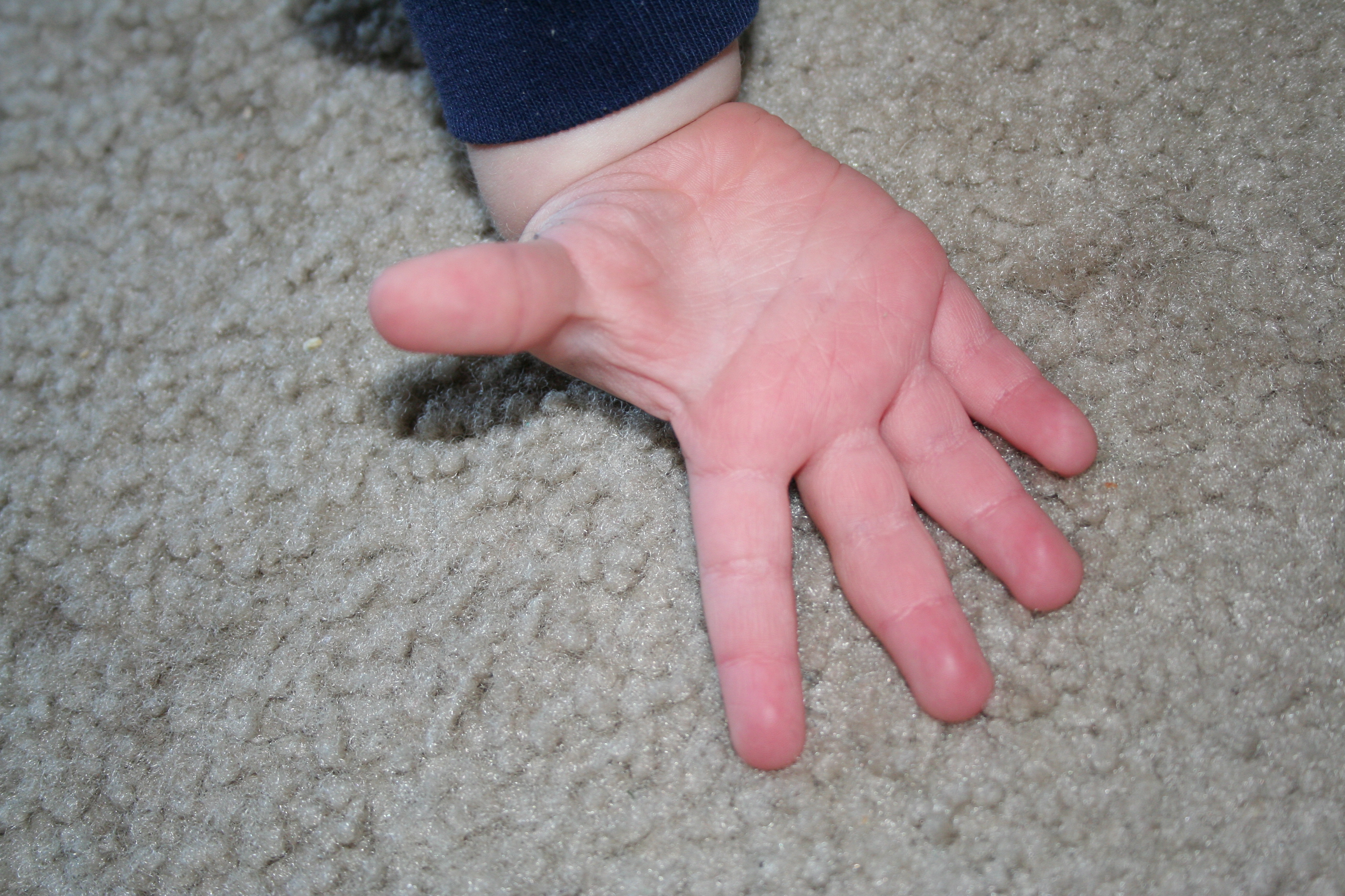Silent, like Harpo Marx, the middle child poses his hand, too.