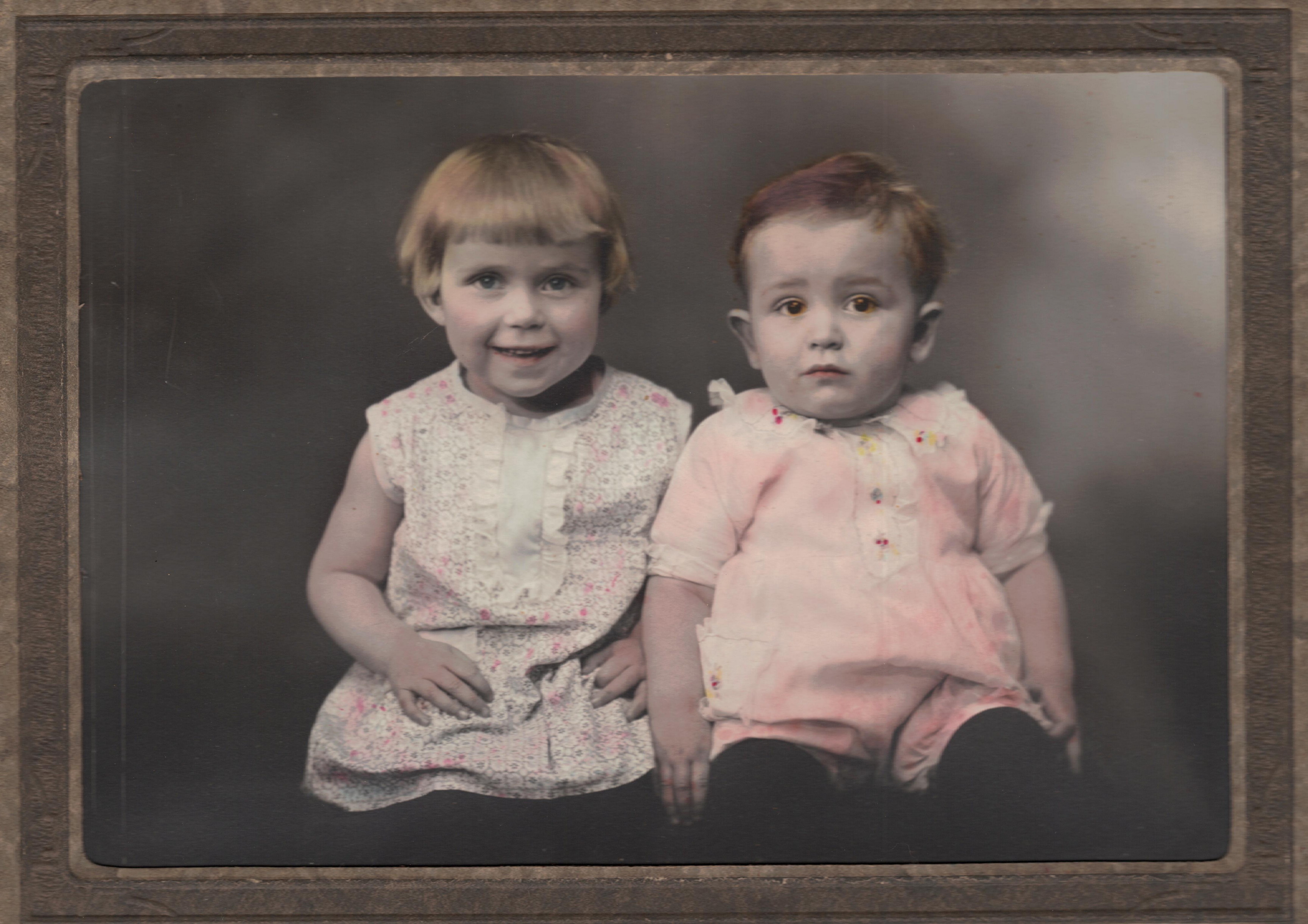 This photo is so funny! Mary and Jack Wilcox, circa 1929. Why did the photographer tint the little boy’s clothes pink? Do you suppose my dad was really dressed in pink? There wasn’t any real gender-specific color scheme in the early 1900’s, so it is possible that his outfit was pink. He’s obviously a little boy. And look at those ears! My dad’s big old ears were apparent at a very young age. He was so pudgy.