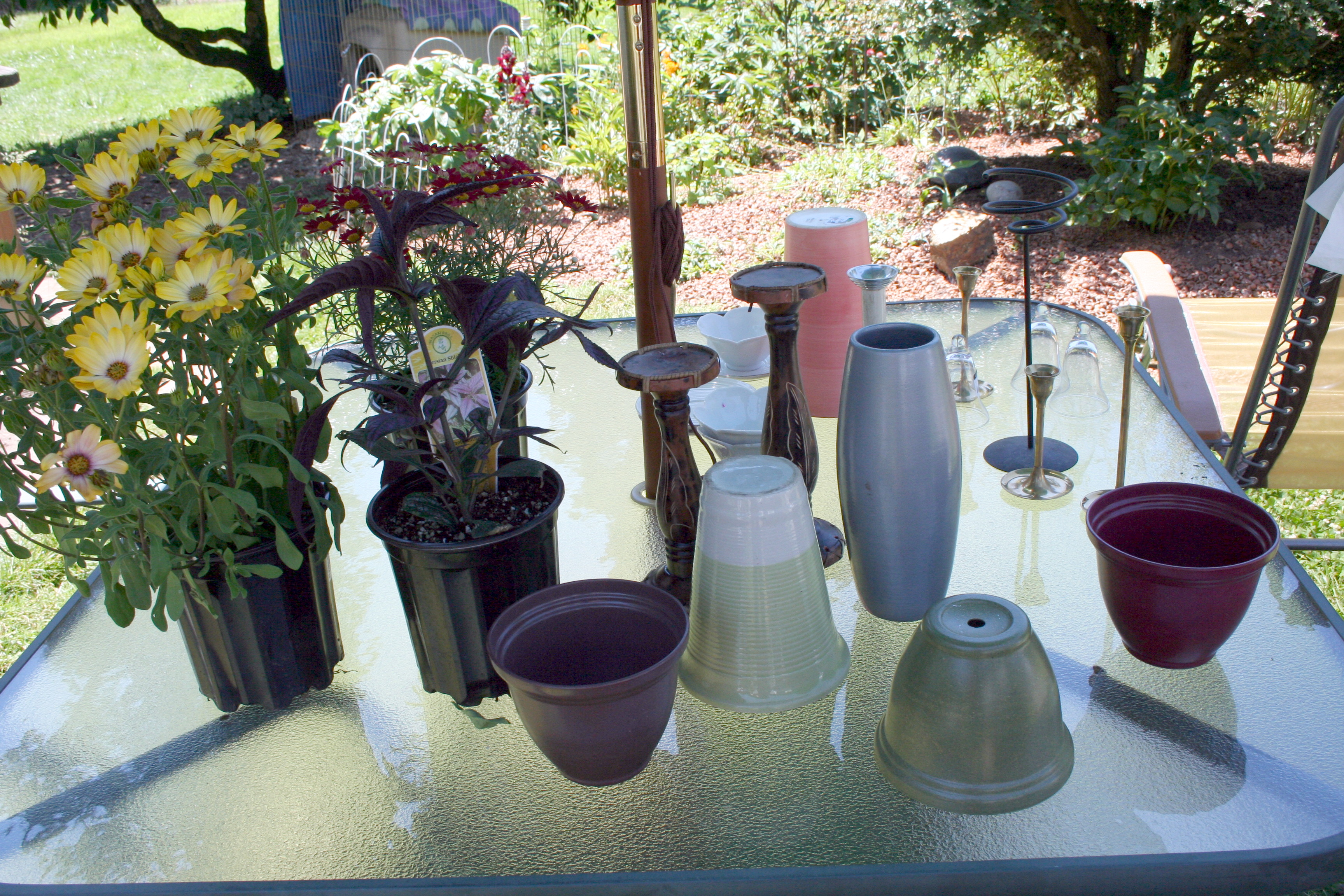 I spent $9 on new plants (see previous post), $9 on mushroom “caps” and $24 at GoodWill selecting my “flowers”, “stems” and mushroom “stems”.