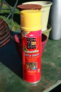 Don’t you love it when the answer is dropped into your lap? What the heck is “Great Stuff” anyway? Some sort of expanding foam insulation for $3/can. I bought a can and told my husband that I wasn’t going to let anyone at the hardware store know what my intended use was. He just grinned.