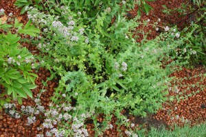 The rain knocked my oregano around some. I grow the oregano more for the honey bees than I do for use as an herb. No honey bees out in the rain, though. They’re fair-weather insects.