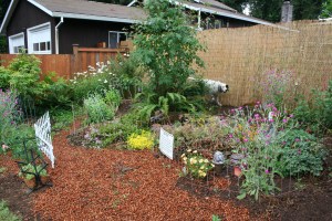 My future pond will be right where those yellow sedums are right now. I’ll have mosquito fish in the pond & hopefully we’ll attract some Pacific tree frogs into the neighborhood. I want a water feature with the water spilling over that big rock that is balanced above the sedums. Dreaming now…