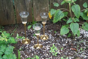 The water in the yard art more than doubled since yesterday. Little rain gauges.