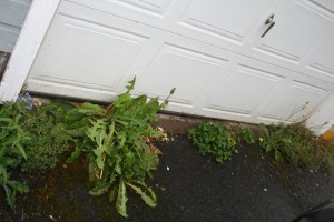 A lovely shot of the weeds in front of the garage door: forget-me-nots, dandelions, false dandelions and more. I was going to pull weeds today but instead Mother Nature watered and they will grow taller before I get to pulling them.