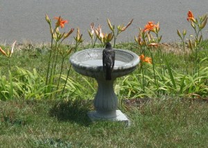 I had no idea how popular a bird bath would be when I bought my first one last summer (it froze and broke in half. Don purchased this one-piece concrete one for me to replace it).