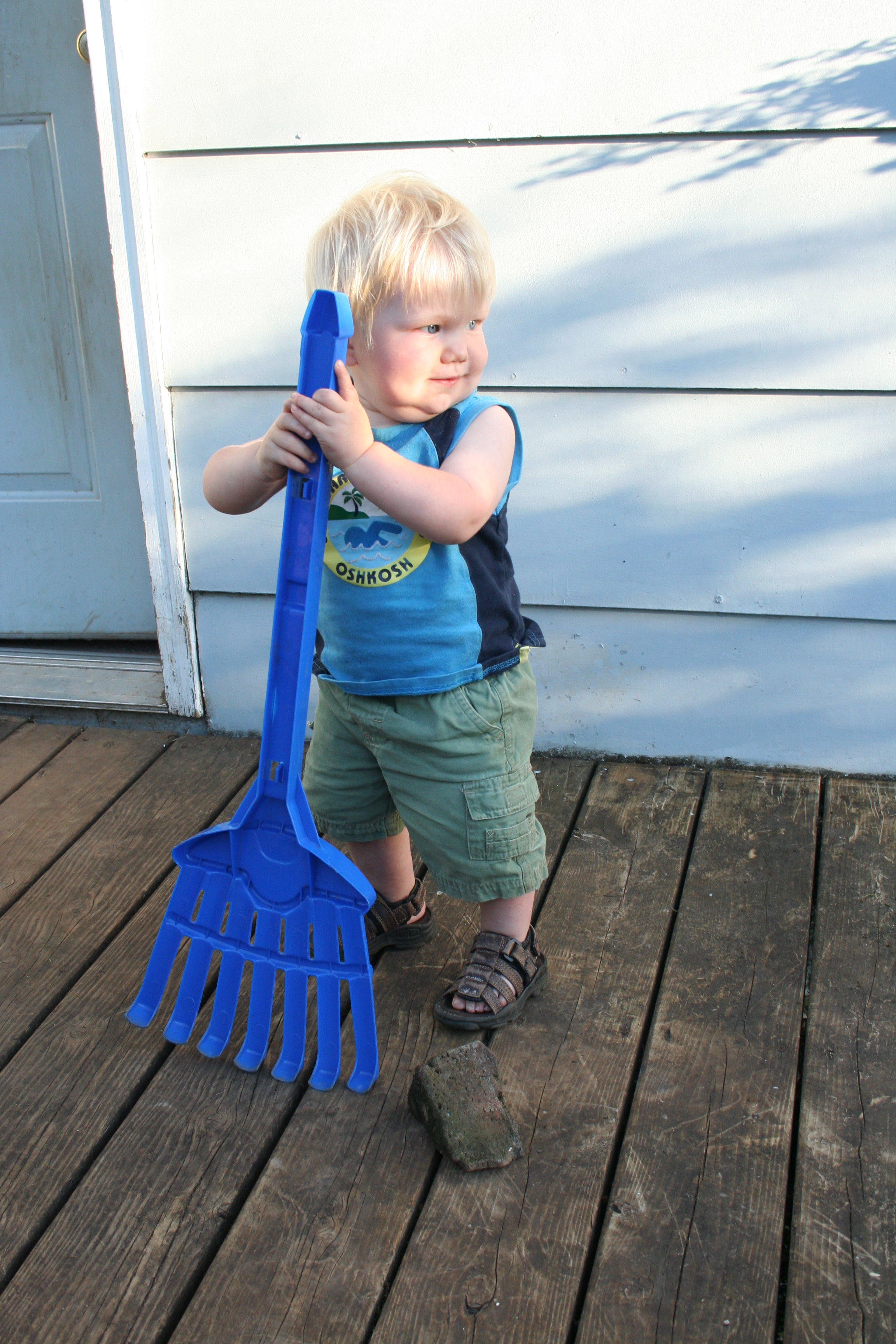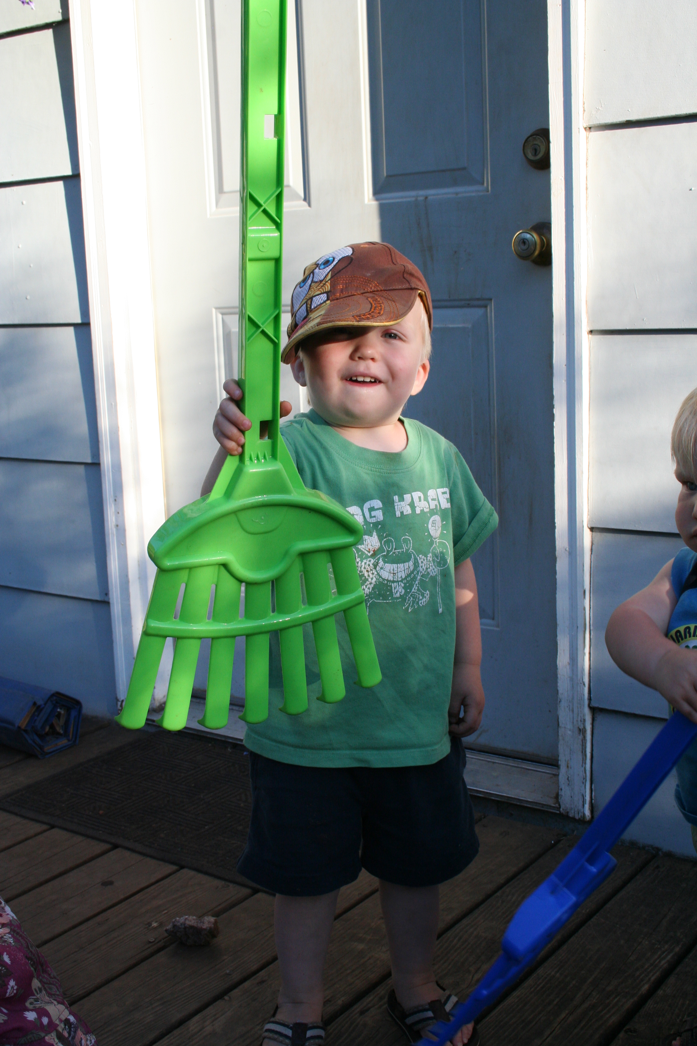 We took a walk around the yard. Grandma cleaned up most of the dog poo but we stepped carefully anyway. We found: a horse, a crocodile, a goose, a frog, some mushrooms, an owl and some butterflies. And apples and green tomatoes.