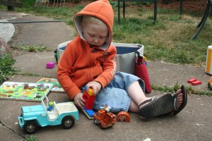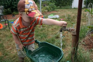 This kid is mechanically inclined. At age 2, he’s figured out which direction to turn the faucet to get water or to turn it off. Previously, he figured out how to pull apart his plastic yard “tools”. It comes natural to him.