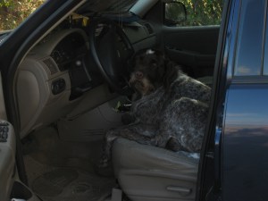 Not sure if Murphy is just one very tired bird dog or if he’s just ready to drive home.