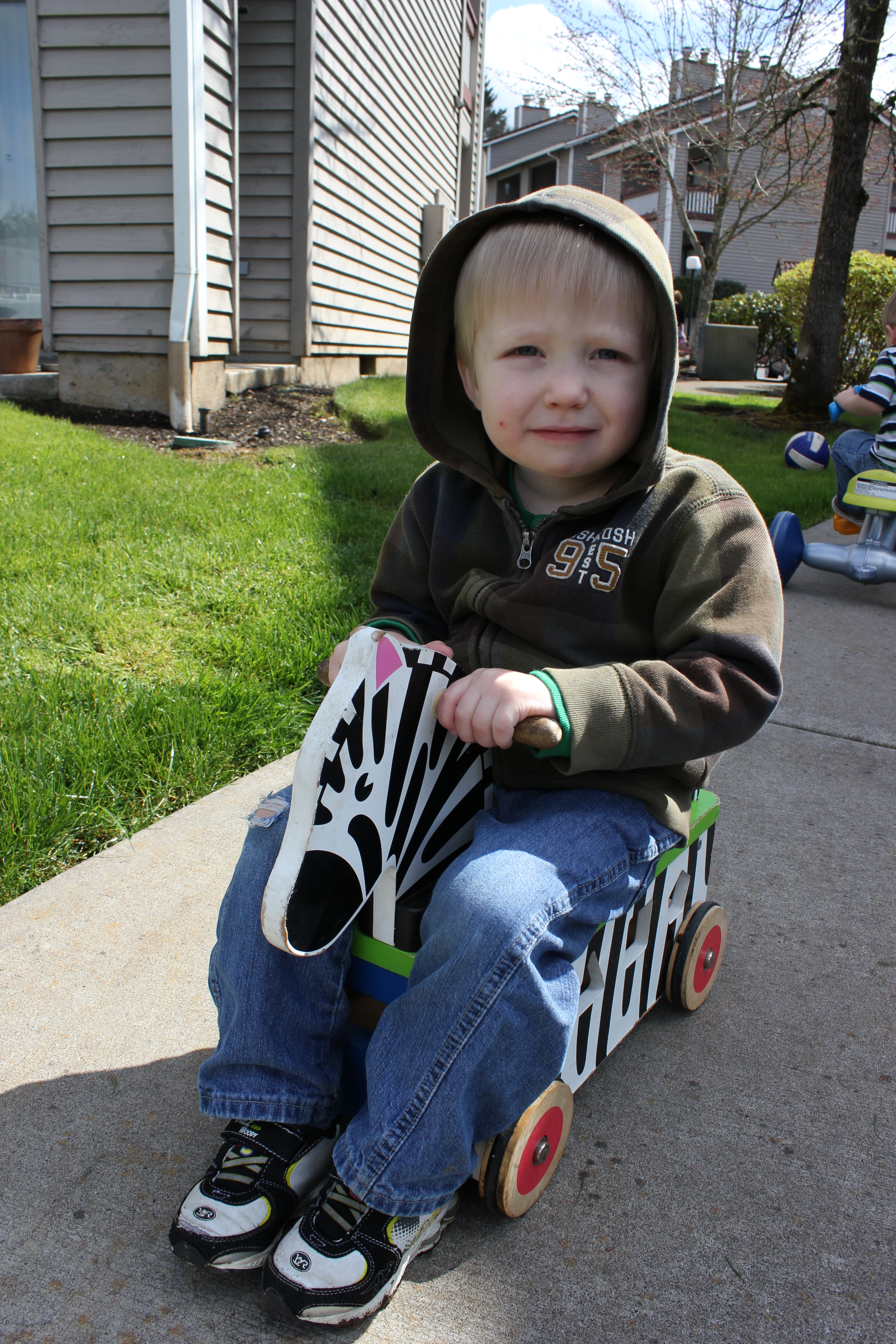 Javan spent some time saying good-bye to the zebra toy. Grandma brought the zebra back to her house where she’ll have to find a box to ship it to Alaska. It didn’t make the cut for what fit into the trailer.