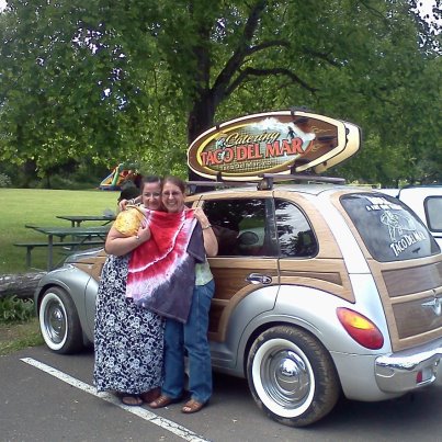 Kathy and I in front of Helen’s incognito car. LOVE my new tie-dye shirt!