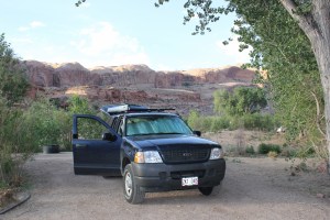 And we were tired, we were fighting a wind that started howling when we were on I-84 in Idaho and that was still howling across the Utah outback, and all we wanted to do was to find a decent place to camp. There isn’t much offered and the map we had of Utah (purchased in Scipio, finally) didn’t show much. We knew we didn’t want to camp at the Sate Park out of Green River, although I can’t tell you why we knew that. We just did.