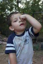 Ha! Nothing like rubbing dirt into your eyes, Justin! At least he didn’t try to eat the rocks like his brother.