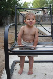 Fearless Boy was in and out of lawn furniture, climbing up ladders (!!) and stomping on all the dog’s tails, including Murphy’s. All dogs are Midnight to him, but Murphy didn’t seem to mind being called Midnight. And he didn’t seem to mind being walked on, either.