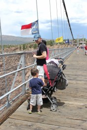 Needless to say, we didn’t stand around much on the way back across the bridge, but going over the first time was a leisurely stroll – except when the cars came rolling across! It’s rather unnerving to be standing on a suspension bridge a thousand feet above the floor of the canyon when a big car rumbles by, shaking every thing. I don’t know how much more you had to pay to drive your car across, but I am certain it was a lot more fun to walk across.