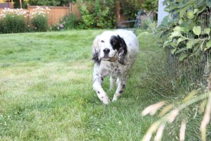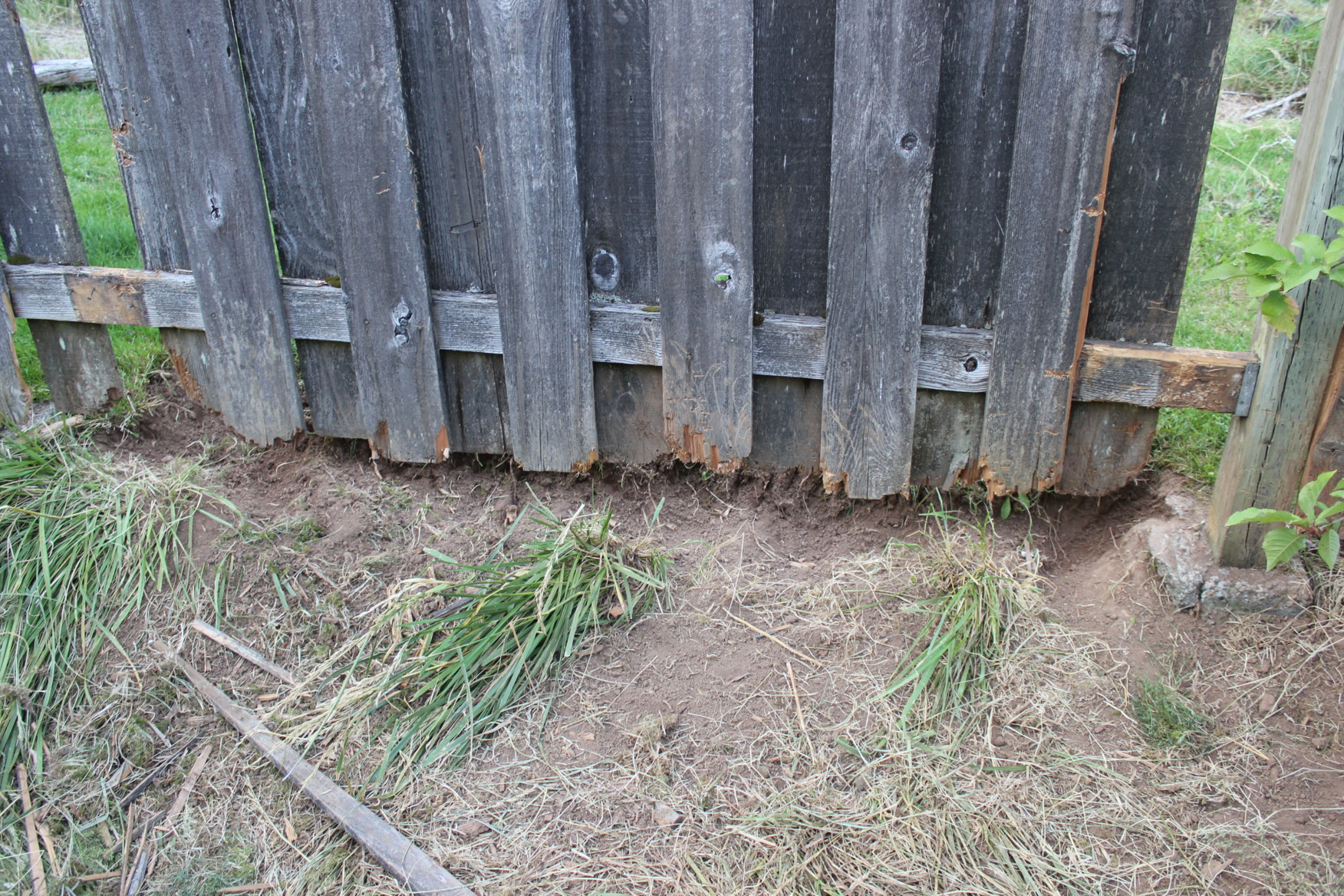 He pulled four boards off of the fence and dug deep holes all along the border and he chewed up every one of the remaining boards. He was such a good doggie!
