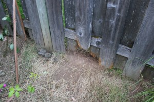 OOPS! That board splintered! Oh well, now there were two boards off of the fence and Harvey could really see into the other yard. Too bad they weren’t side-by-side, because then he could just go over into the other yard.
