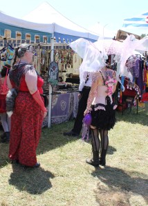 A typical Merchant booth in the Realm. This year, the merchants were – by and large – quite friendly and quite happy to please. There were a couple exceptions (like the booth that would not post price tags nor quote you a price until you picked out a dress), but for the most part… The merchants were there for the Faerie Consumer.