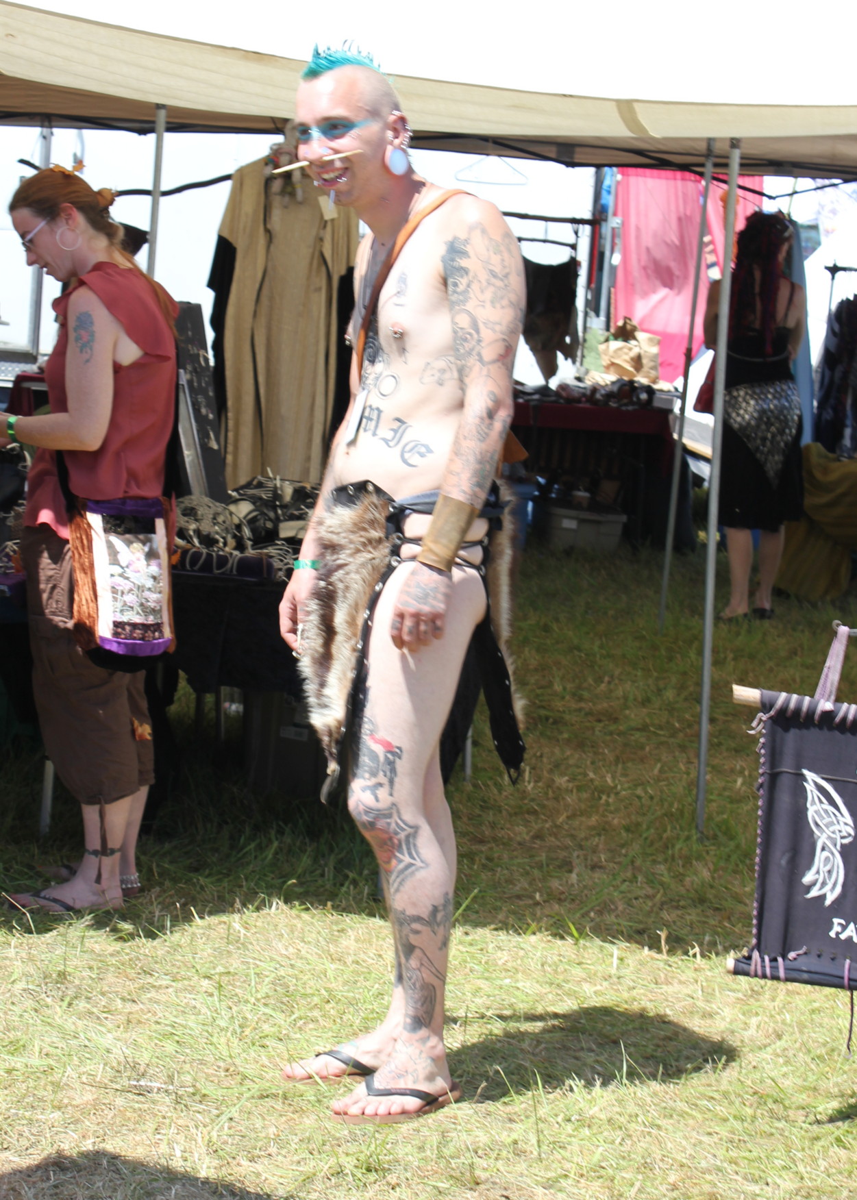 There are so many things I could say about this young Barbarian. Bad posture. Great personality. He was quite the charmer. And I have no idea how he kept his skin so shiny white in the sun that beat down on us. Besides his tats, he was showing off his Pacific Northwest “Moon-tan”.