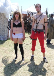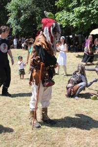 At Faerieworlds, all manner of people get along for the day. Here was have a Satyr sauntering along with a Pirate & Wench, a sort of Knight (?) and a… Steampunk?