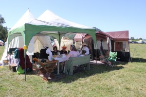 At 3:00 PM (more or less, since we were on an Adventure), we met with the Ladies Mary Foley (left) and Desdemona (far right) for High Tea under the canopy in the Campground. Besides myself (Ms. Rose Bindweed) and my guest, Ms. Danu Saturnfly, we were graced with the presence of a French Faerie (with the Pixie hat) and her companion Faerie from the North Aegean Sea. Sadly, I do not recall their (foreign) names.