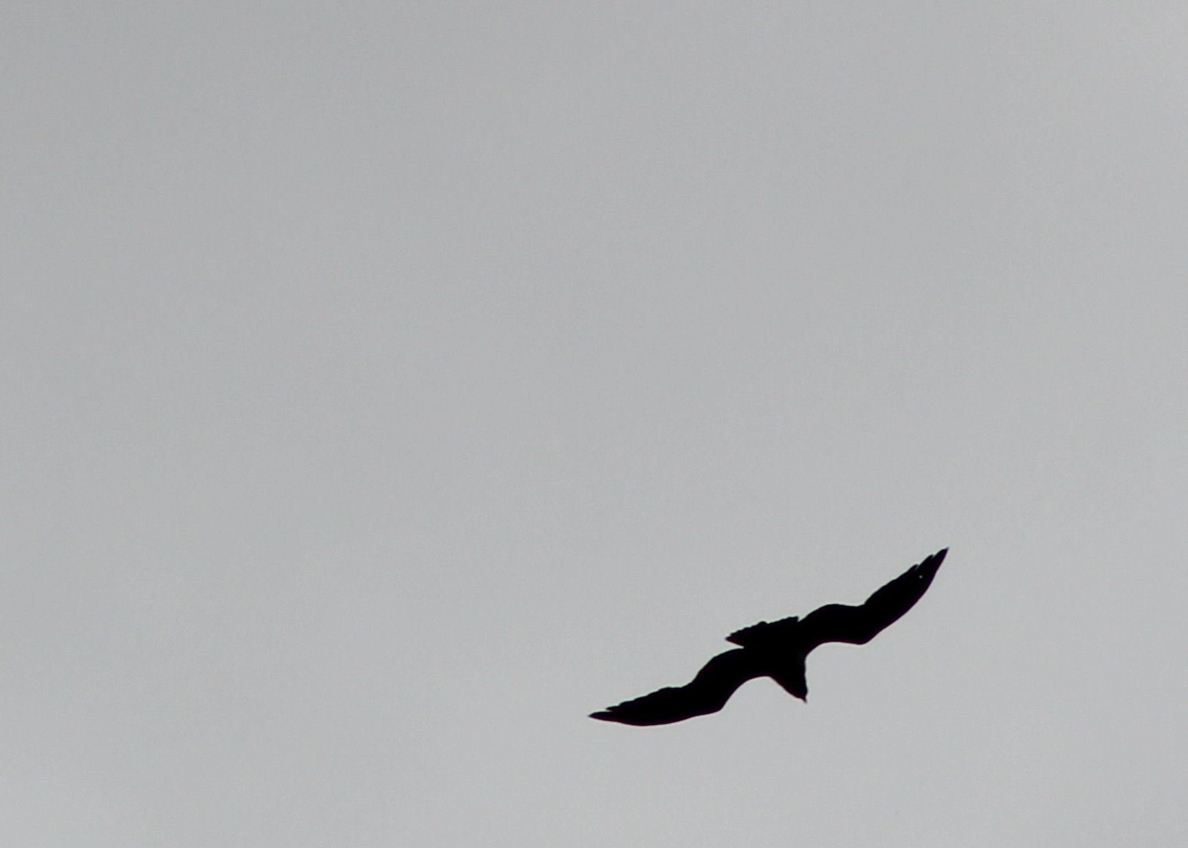 An Osprey circling overhead. I could hear it calling from a long ways off. I put the 75-300 mm lens on and attempted to capture it in flight as it circled over the bluff.