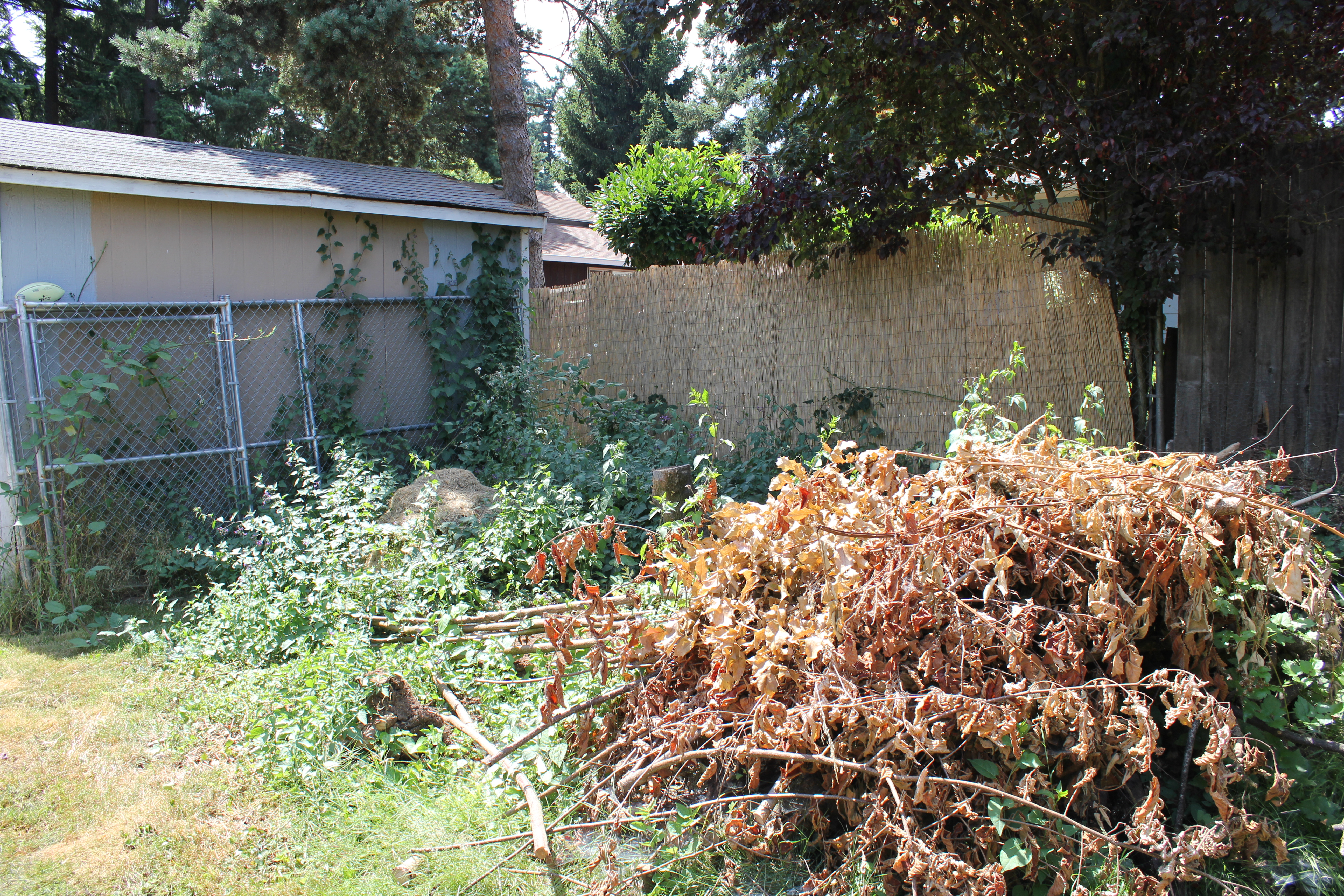 The blackberry canes growing over our fence from the neightbor’s yard. Loverly.