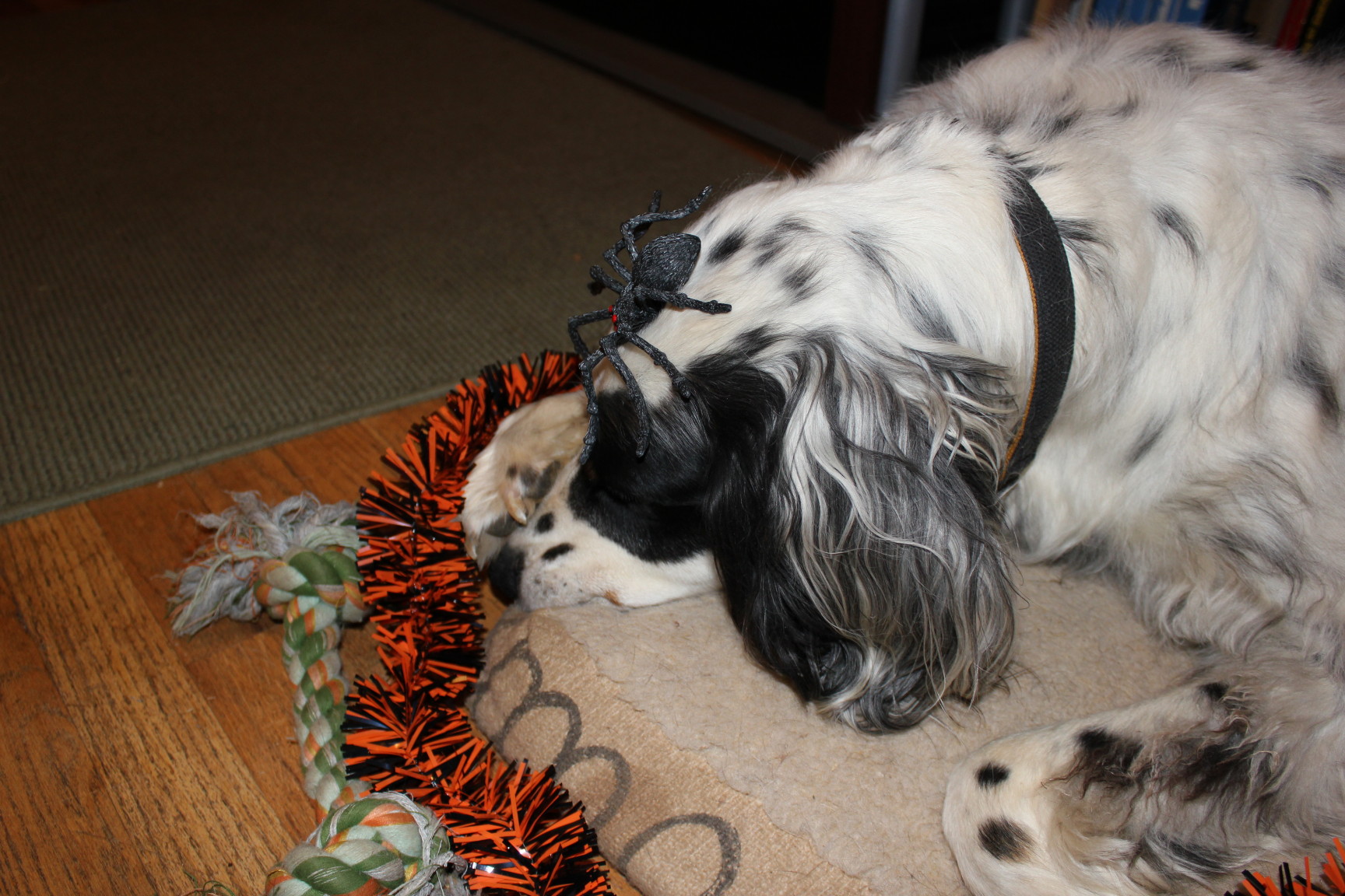 So I brought out the BIG spider. The “umbrella” spider, as I call it. It put one or two of its legs over Harvey and tried to smile for the camera.