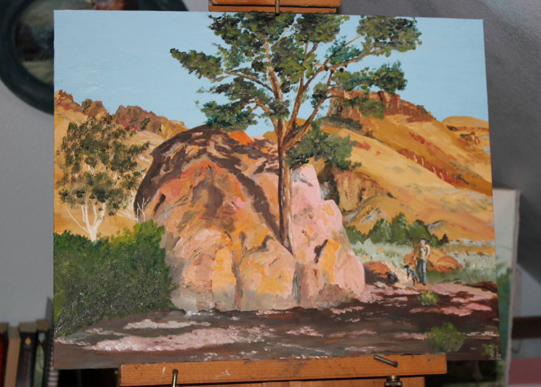 This is an unfinished oil painting that I am actively working on. I need to finish the foreground and the highlights on the bushes. Early sunrise at Pike Creek Trail Head on Steens Mountain. It’s been a stretch for me: I did a lot of palette knife work on this. I’ve never worked with the palette knife before.