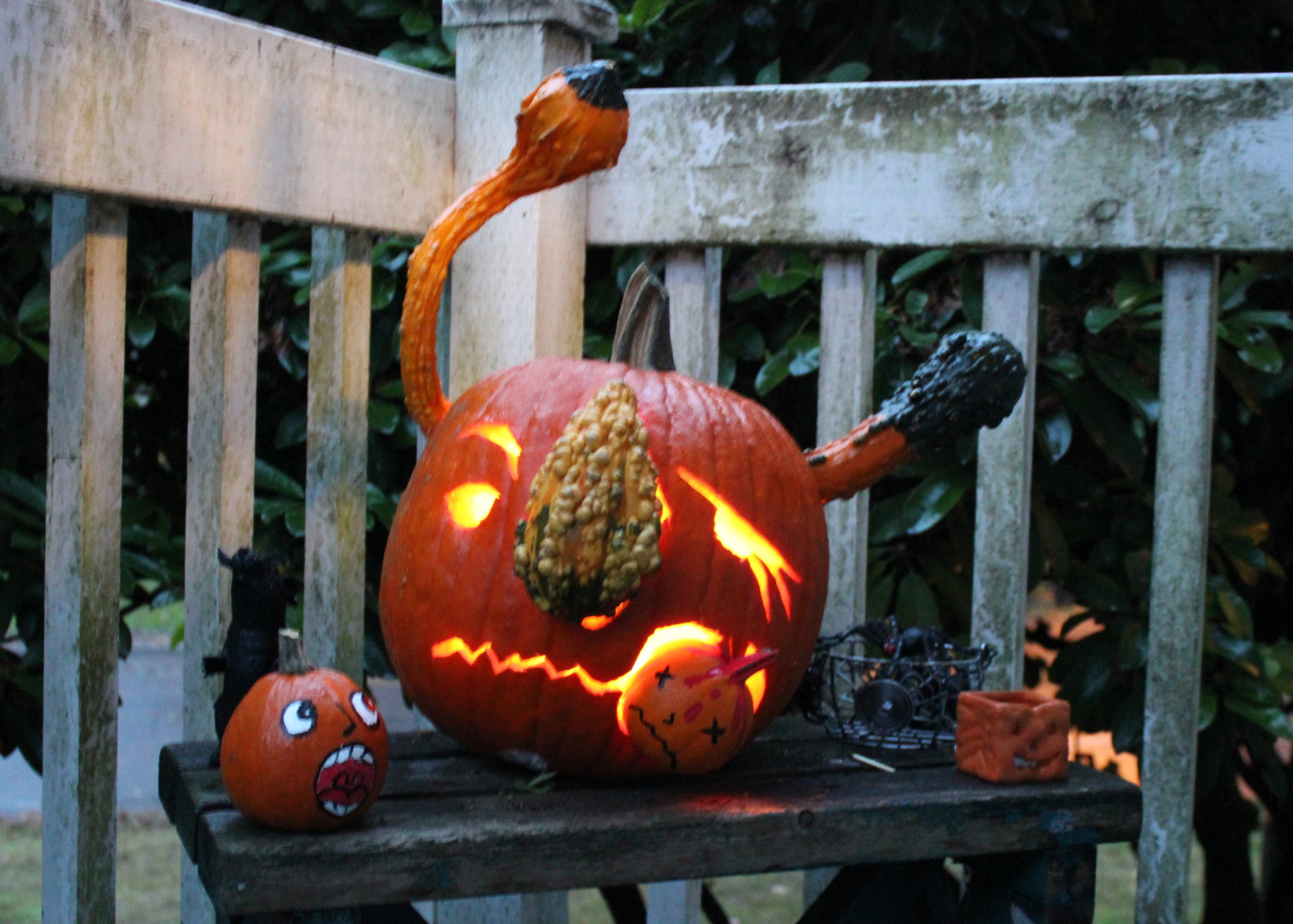 I consider the jack o’lantern a masterpiece. HAHA. I don’t think the little pumpkin on the left is very amused, though, and the one in jack’s mouth isn’t talking…