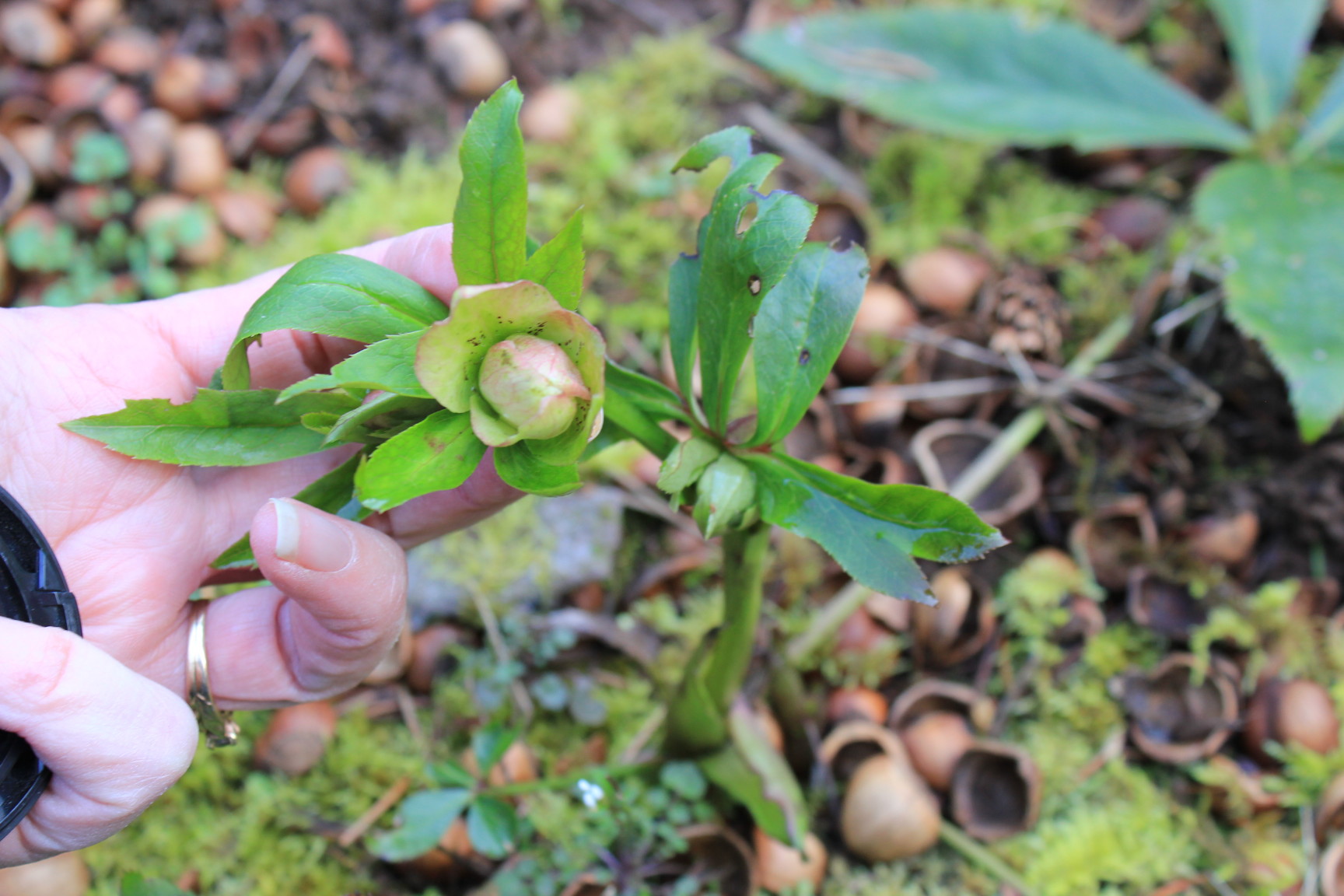 My sole surviving Lenten Rose (Hellebore) is blooming! Usually, it is pouring rain through February and I never see the Lenten Rose in bloom (if ever it has bloomed before). I am sad that only one of the many I have planted has managed to survive, but – dang! It has one bud opening and another two to follow.