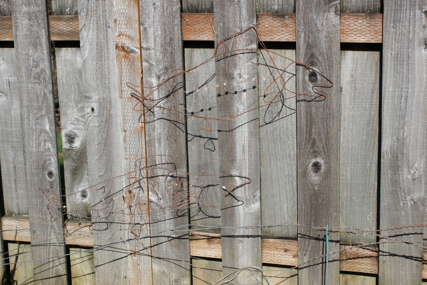 My salmon are swimming merrily along the fence… Usually, they are hidden behind my gladiolas, but in the winter they are laid bare to the world.